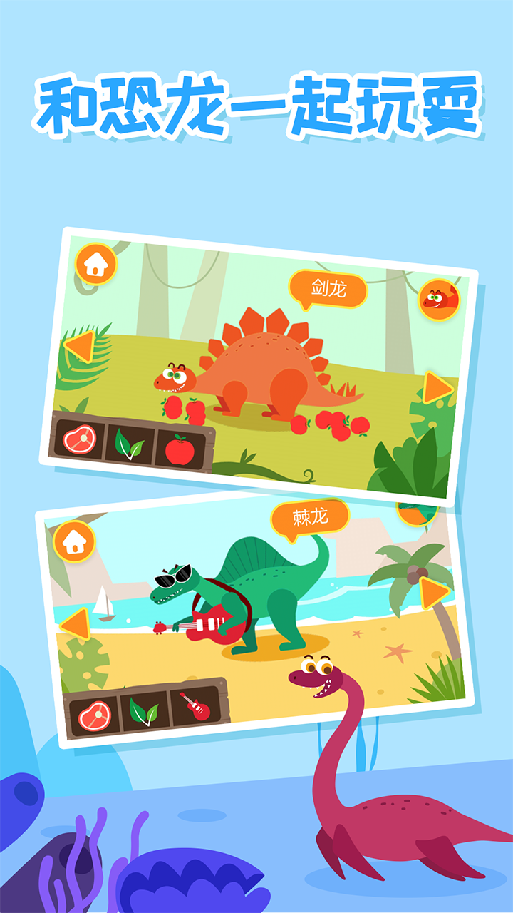 3、新增恐龙场景,带小朋友认知更多恐龙生物,强化恐龙认知;