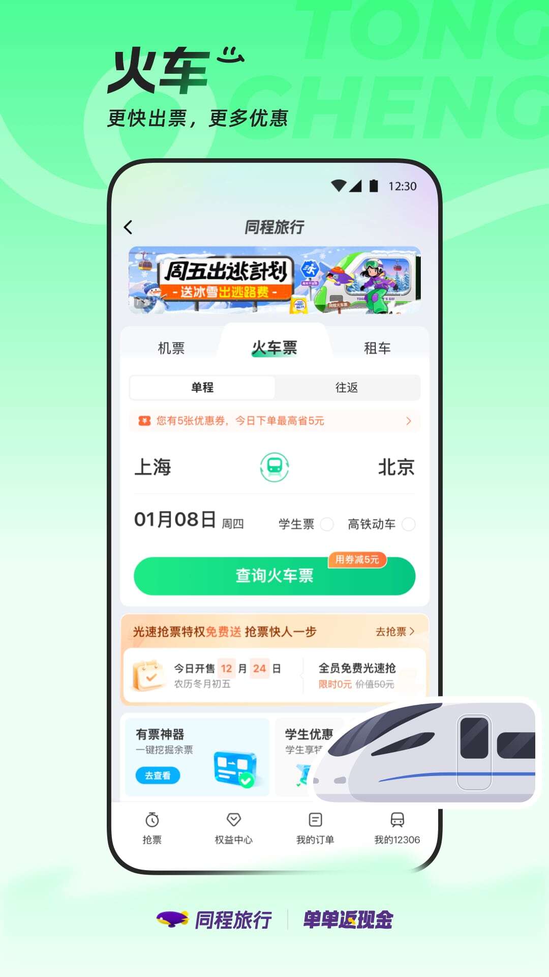 【火车订票】光速免费抢,第2单1折起
