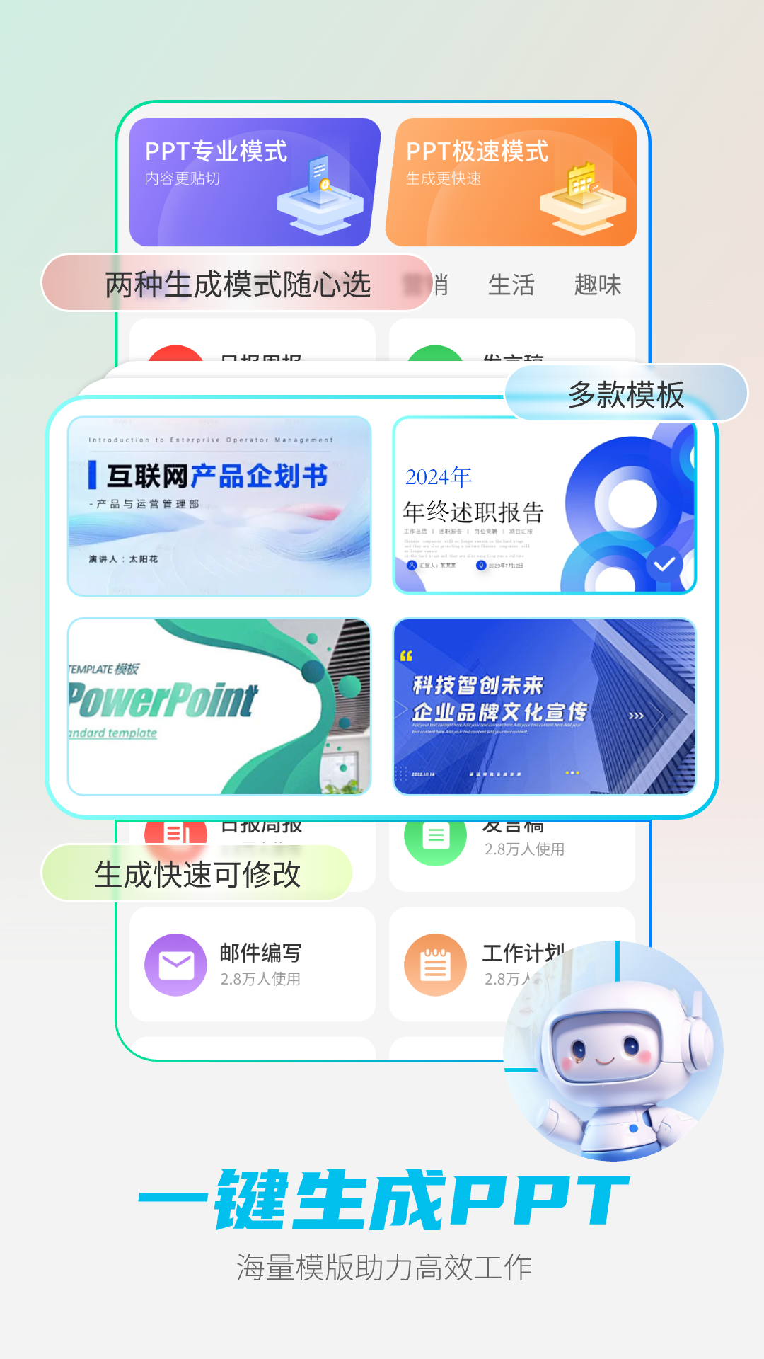 DeepAI智能助手是一款集智能聊天对话、爆款视频、AI特效、AIPPT、AI 绘画、AI 写真、AI 一键成片、AI 智能写作文章等功能于一体的智能 APP。它拥有全新的 AI 大模型,能够提供智能问答、聊天陪伴、内容创作等服务,让你在写日报、心得感想、总结、报告、论文等时不再焦头烂额,AI 会给出专业的建议。此外,它还能轻松实现 AI 视频一键成片,让你制作短视频并发布到短视频平台赚取流量。AI 绘画可以画出你心中的美好,AI 写真让你无需去照相馆就能拍出大片效果,AI 视频写真则能让你看到自己不一样的美,AI 音乐还能一键创作属于你自己的原创单曲。强大的智能中文训练模型,让你随时随地与它对话,解决各种难题,无论是写文案、策划案、代码,还是写小说、作文、工作日报、工作心得,它都能胜任。AI 改变生活,让我们拥抱 AI,拥抱未来。