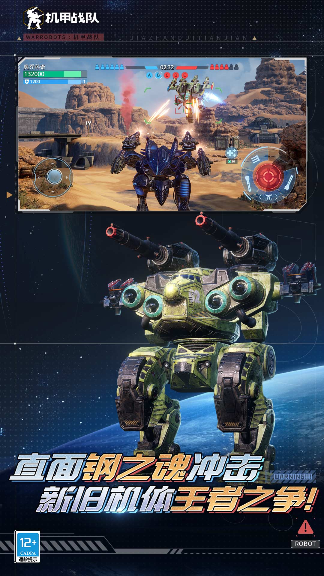 机甲战队是一款6v6多人联机射击对战手游。玩家作为指挥官,通过控制机器人夺取灯塔、摧毁敌方机器人来扩张领土,在对战中获胜。游戏中含有多达70种不同移速和生命值的机器人,以及海量武器可供玩家自由选择搭配,高自由度打造对战武器。为应对奇袭、错综复杂的战术机动和敌人的诡计做好准备。毁灭!占领!升级!变强——证明自己是机甲宇宙中最优秀的机甲指挥官!