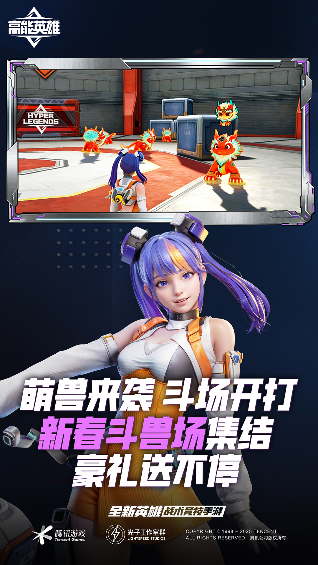 3.新春主题:趣味道具【年年爆竹】可在安全燃放中感受节日氛围;同步开放【新春斗兽场】玩法,英雄们需携手驱逐捣乱的年兽。
