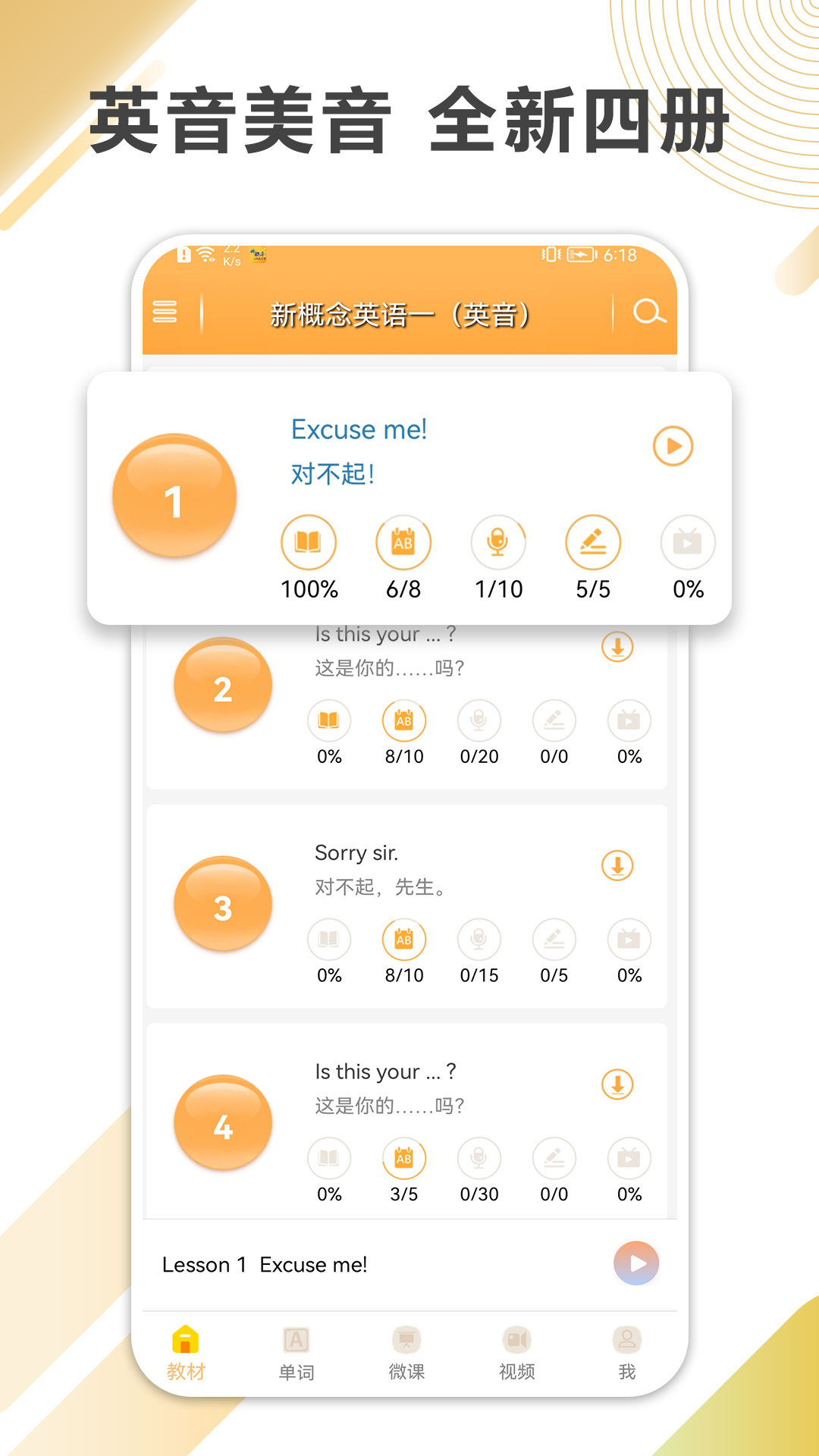 【强大功能】字幕同步,中英切换,上、下首切换…——让你做自己的口语老师