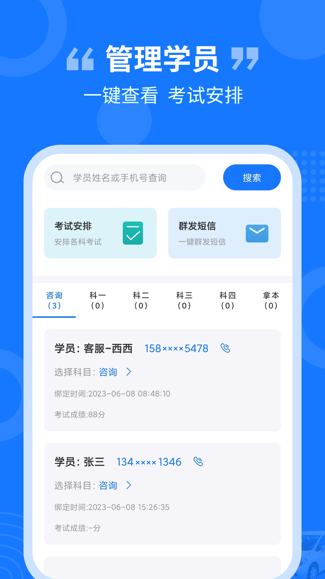 4、招生线索:可以随时收到需要学车朋友的报名信息,帮助教练们解决招生问题。