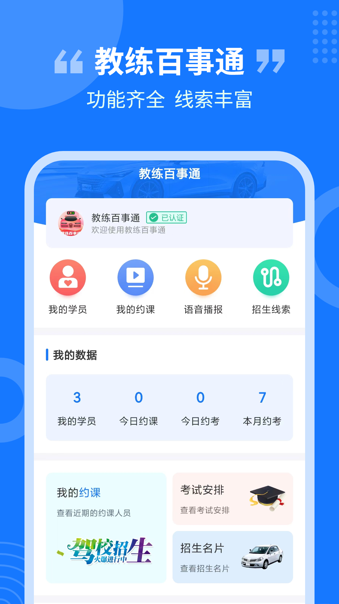 “教练百事通”是一款现代驾考教学中不可或缺的神器,它为驾校教练提供了强大的支持和便利,不仅可以帮助教练们招生,来解决招生难题。还可以帮助教练们更有效地辅导和管理学员,提升他们的驾驶技能。