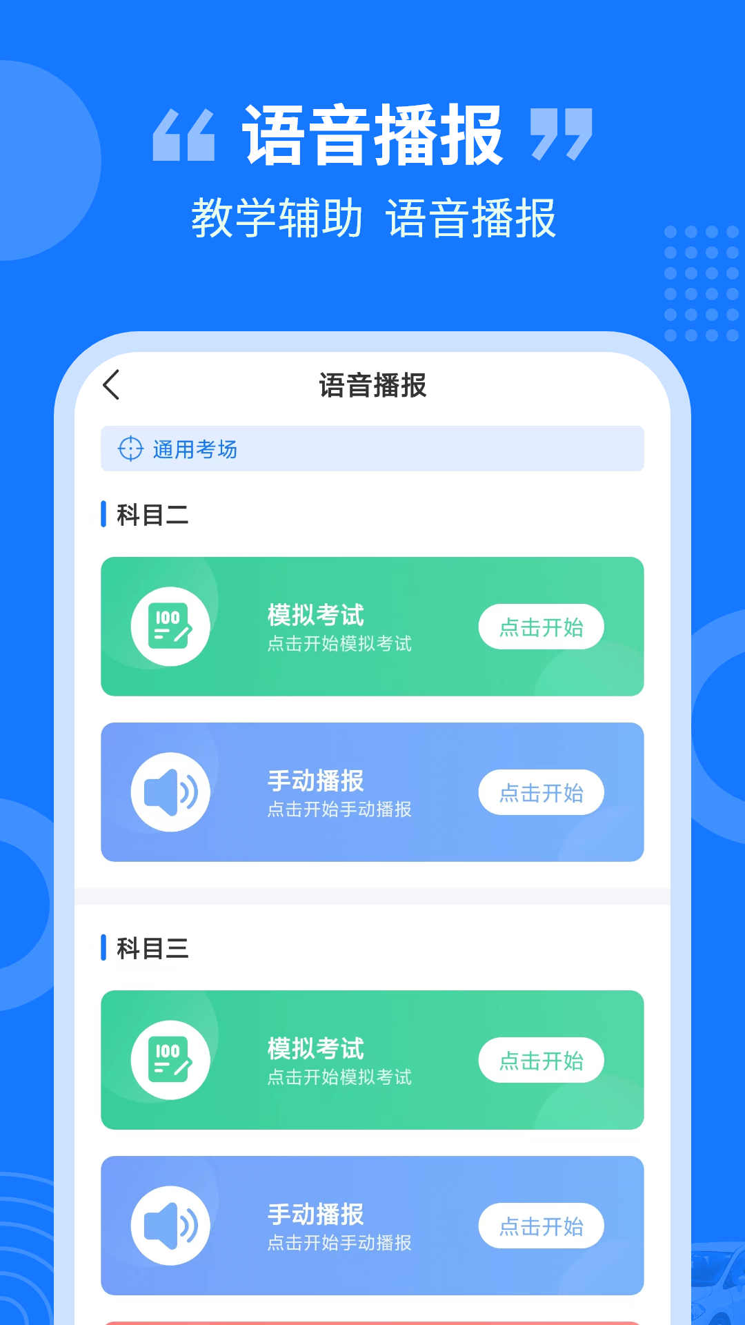 3、模拟考试:科目二、科目三路考的音频考试播报,随时随地均可自动完成考试指令,让学员们遇到真正考试时不紧张。