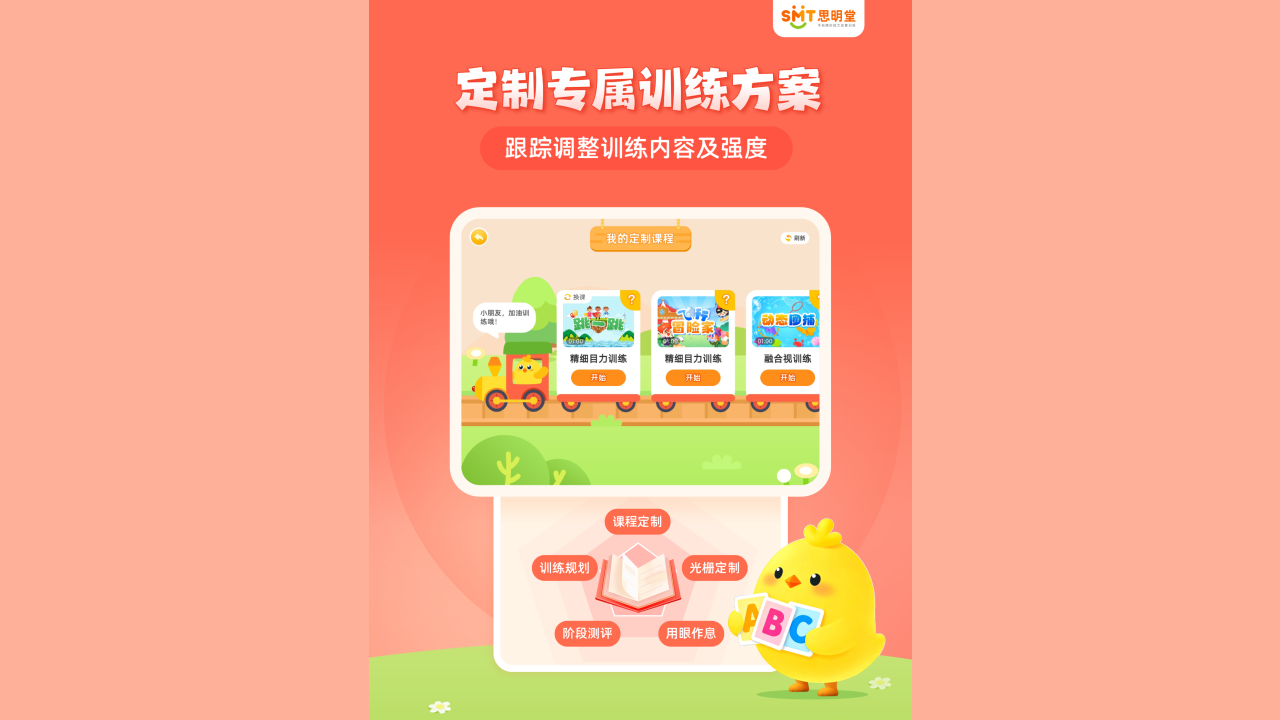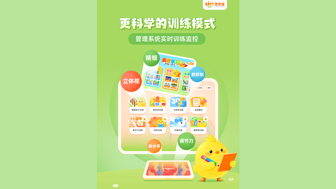 综合15年线上线下弱视训练经验,每月更新训练内容,生动有趣,孩子更喜欢。