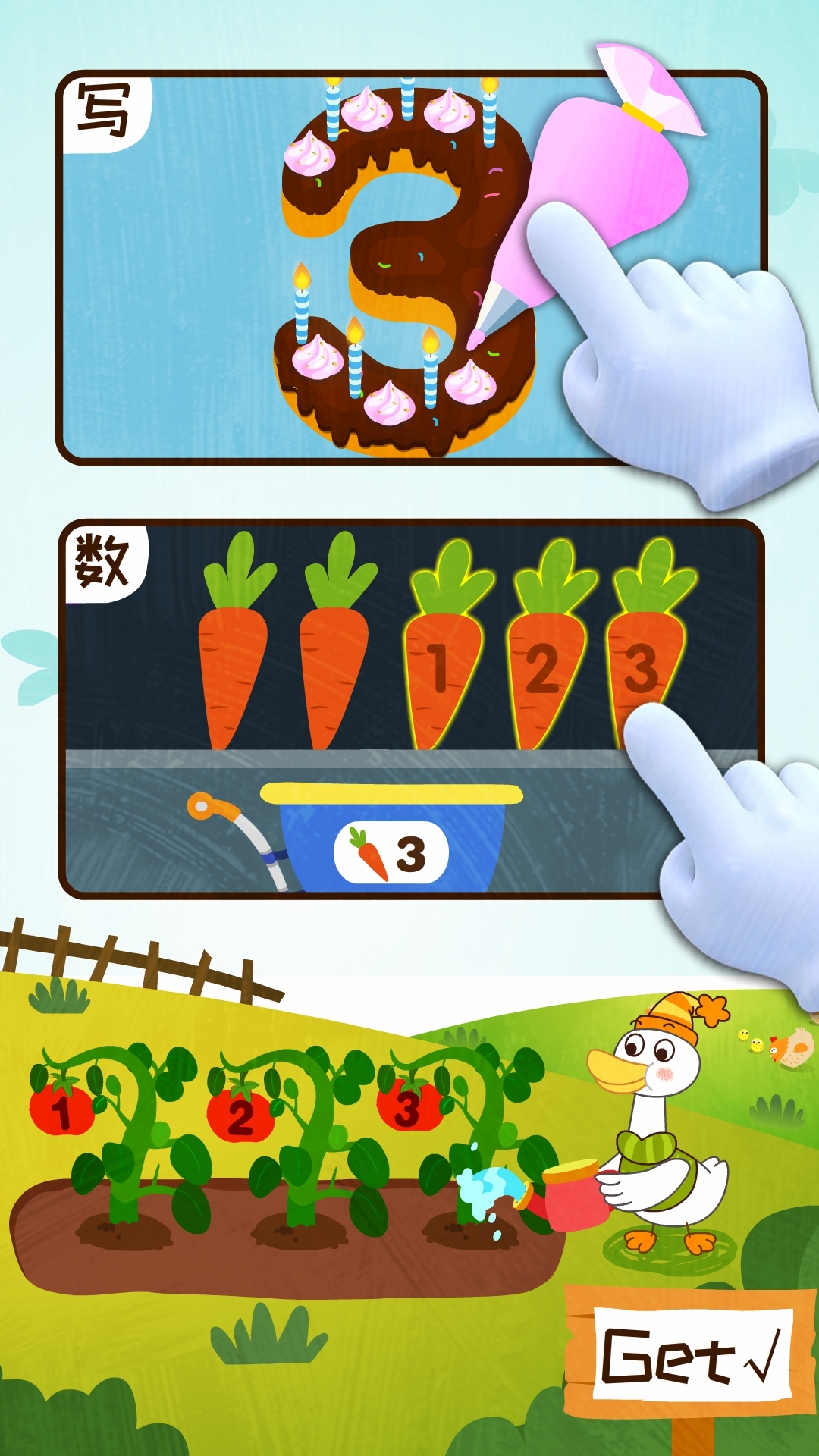 1、数字、颜色、大小和形状四大少儿认知模块,丰富宝宝早教启蒙认知;