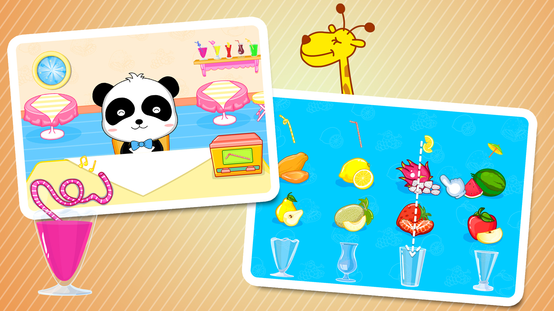 【果汁】:西瓜、蓝莓、猕猴桃、苹果、雪梨……缤纷水果自由DIY;还有各类奇趣装饰做装扮,让果汁更受顾客欢迎。