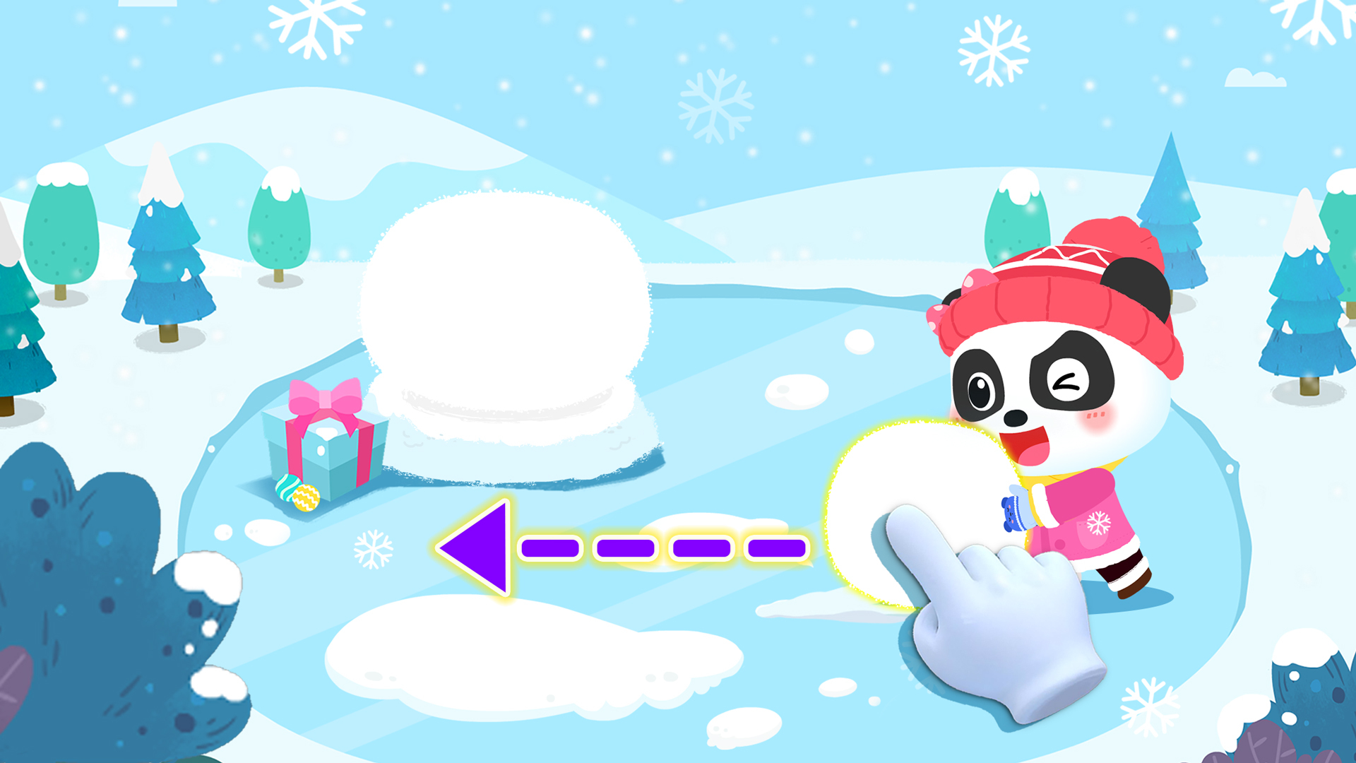 宝宝想堆雪人吗?穿上厚棉衣、戴好手套,出发!先捏一个小圆球,再滚一滚,大大的雪球当做雪人的肚子吧……再戴上毛茸茸的围巾、“铁桶”帽,装扮一下,可爱的雪人就完成喽!