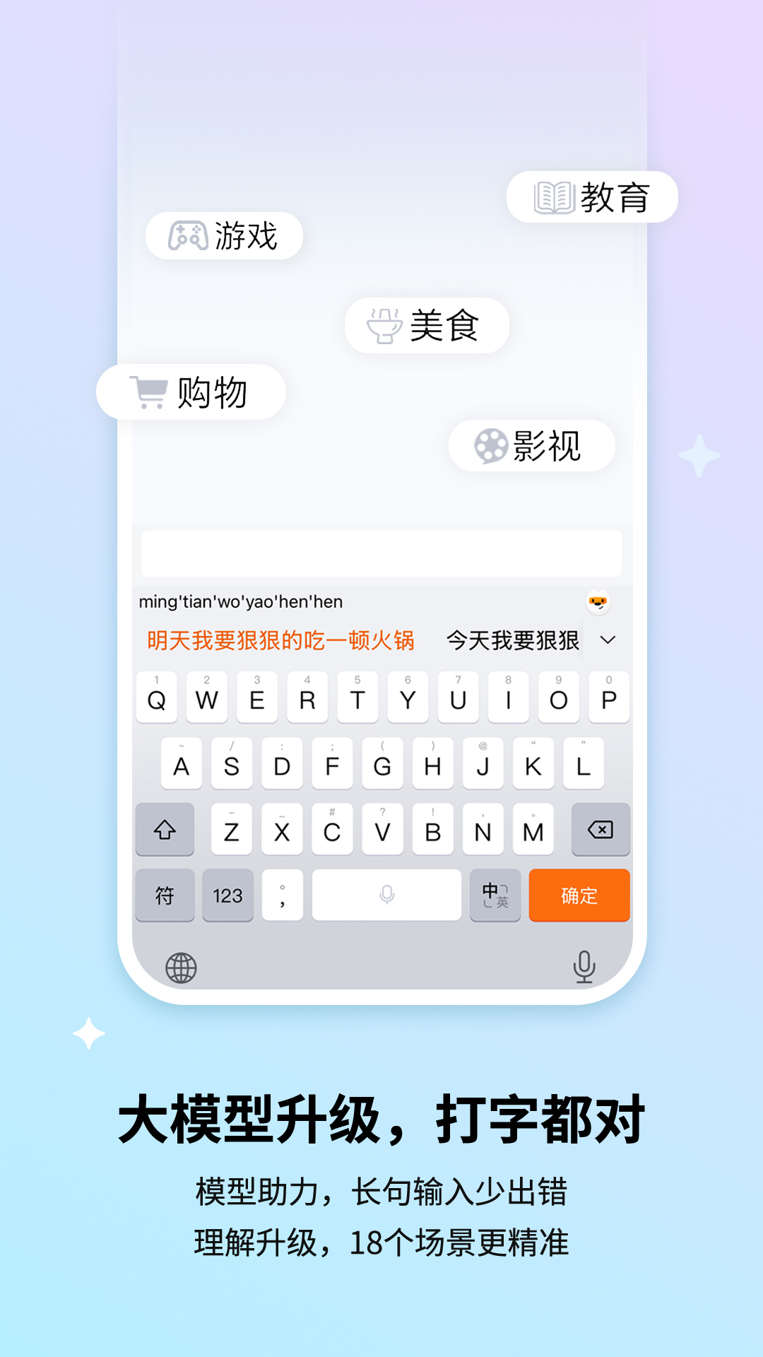 【专属超大词库】多年沉淀积累,拥有庞大丰富的中文系统词库,让输入词汇更精准。