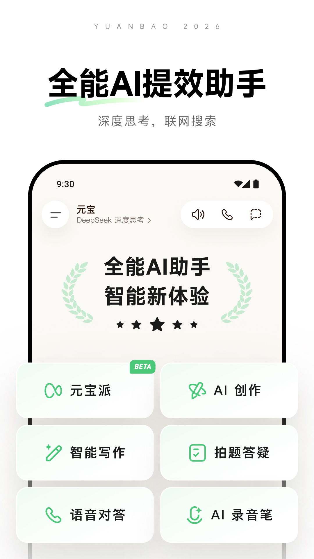 ● 支持语音通话,元宝陪你学知识聊日常