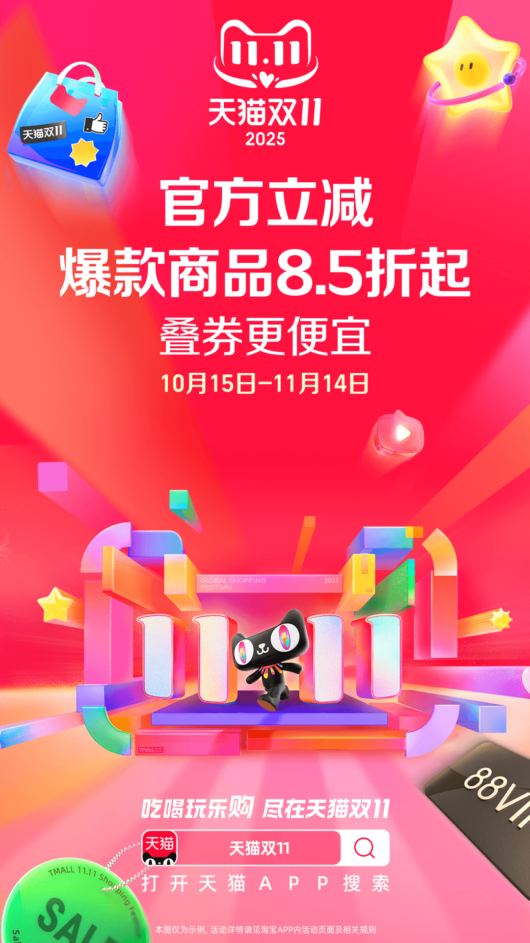 天猫双11全球狂欢季来了!官方立减,爆款商品8.5折起,叠券更便宜!