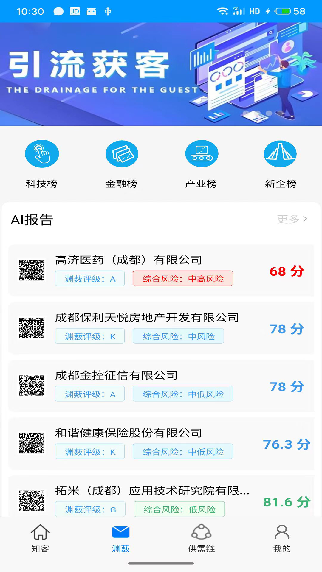 渊薮知客是一款帮助企业客户经理获取客户信息,了解客户需求,开拓获客渠道的好帮手! 平台主要功能:一是为企业和金融机构等等单位的职业经理人、业务人员提供联系企业老板和实际控制人的触达,榜单订阅和企业风险管理等等,方便公司业务人员快速建立起客户圈和掌握目标客群的实时动态,做好全面风控管理。二是为企业招商和营商环境建设提供分行业、分类别、分场景等商业客户触达,方便公司做好会展、会场等集客和路演活动。
