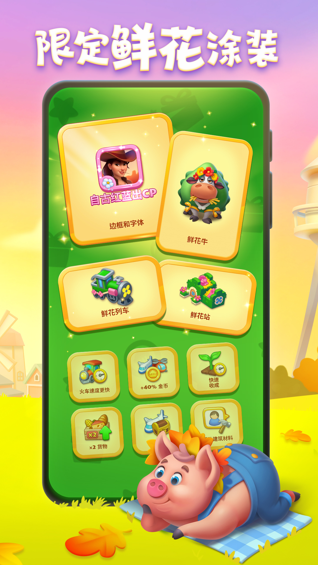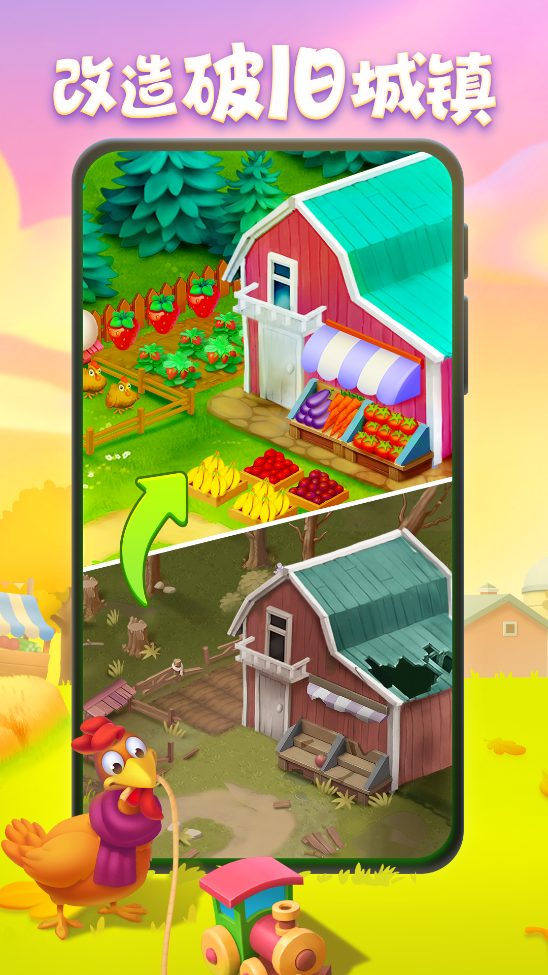 收获农作物、在工厂进行加工,再将货物出售以发展您的城镇。与远处的岛屿进行交易。开设餐厅、电影院和其他社区建筑,让您的城镇别具风味充满生机。探索矿井获取能源并找出古董。运营您自己的动物园并收集世界各地的动物。包含烹饪、消除、家装、射击及驾驶等多种小游戏等您体验。协助好友完成订单,与好友共同体验经营的乐趣。发挥您的创造天赋,打造属于您自己的梦想城镇吧!