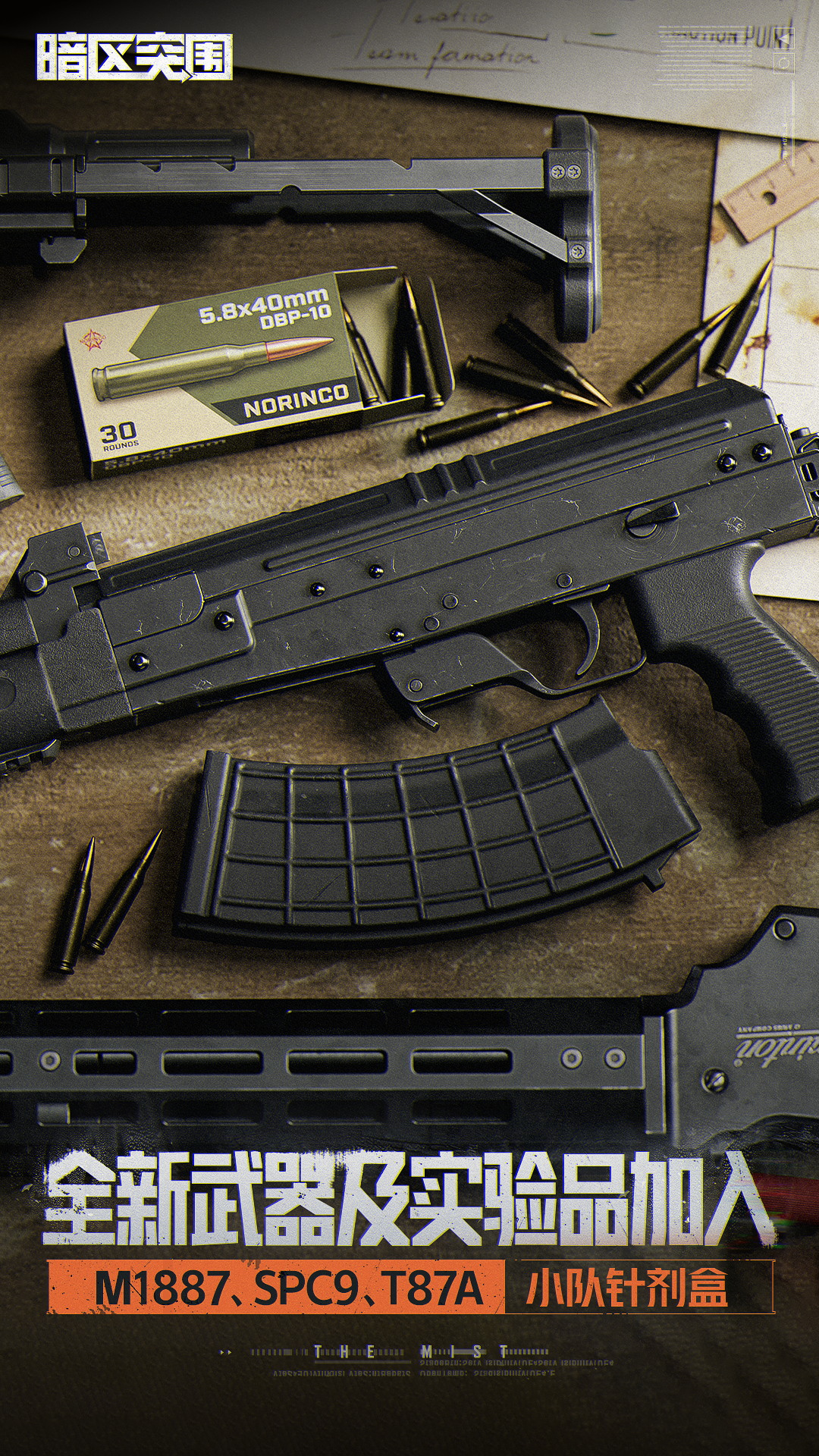 《暗区突围》S17新赛季“迷雾”正式开启,诡异现象蔓延山谷,全新模式“诡雾山谷”上线,全图限时爆率翻倍 极致心跳一把暴富;山谷·诡雾同行PVE模式合作,共同阵营瓜分山谷宝藏;8v8燃爽竞技,团队试炼玩法上线,无限复活战斗,合作积分决胜!战地游商登场,局内即时交易,低价入手大金;7款全新大金加入,藏品再度升级!全新实验品小队针剂盒,团队共享强化!SPC9、M1887、T87A3款全新武器入列,“链锯”RP轻机枪等武器弹药回归,战场火力换代,打造你的专属战备!