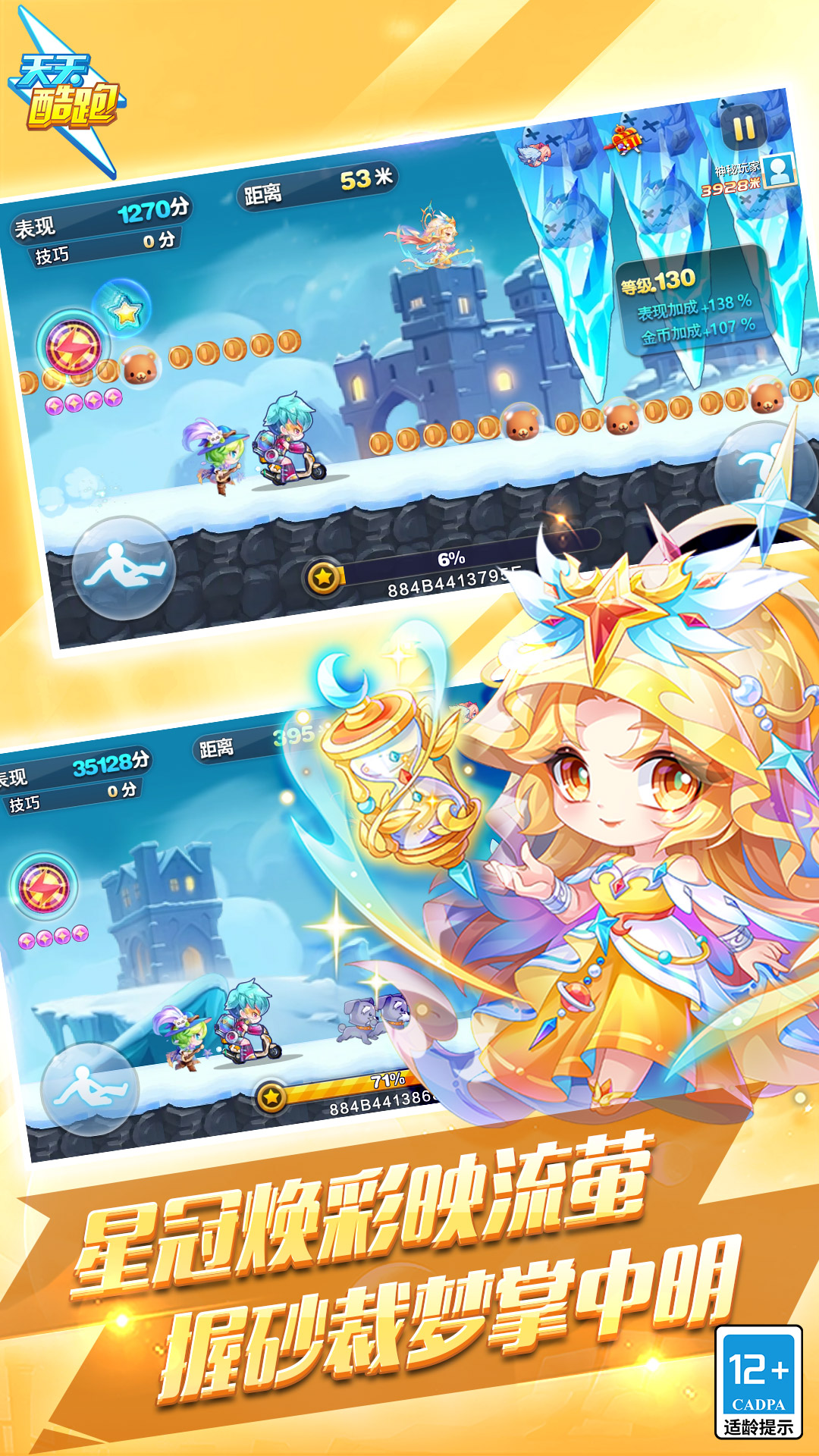 《天天酷跑》是腾讯游戏研发的一款休闲类手机跑酷游戏,在沿袭传统玩法的基础上,特别加入了闪靓坐骑、萌动宠物等一系列心动设计,为玩家带来最为得心应手的跑酷体验!