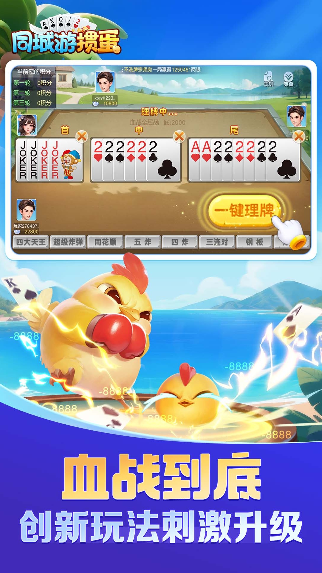 同城游掼蛋进行全新视觉创新,给您带来不一样的视觉体验,并且衍生了不洗牌掼蛋、血战掼蛋等趣味性玩法,能满足您休闲娱乐、提高技术、比赛拿奖等众多需求于一体的游戏。