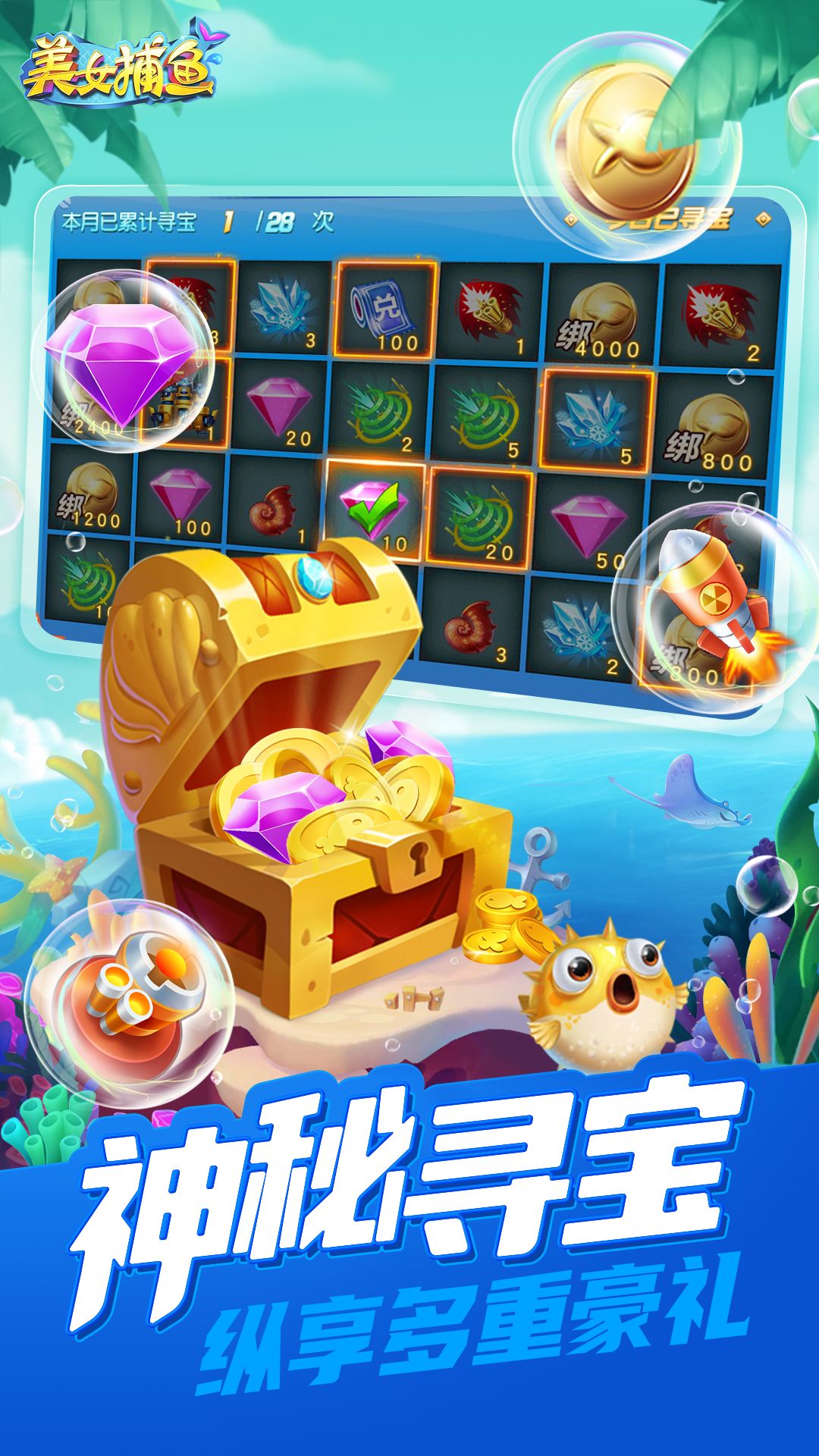 捕鱼游戏拼刺激,精彩活动享不停。全新兑换系统,换道具换钻石。